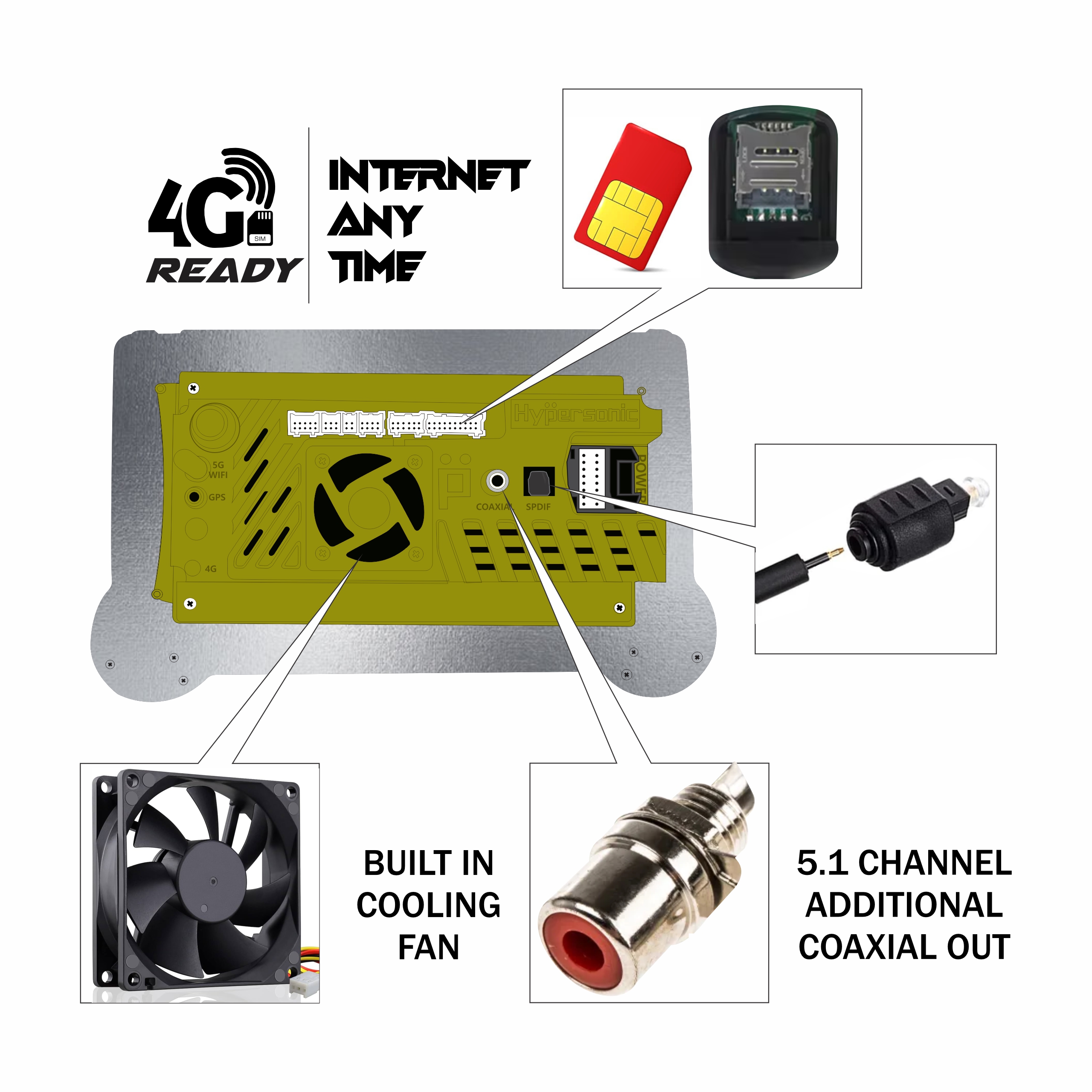 - Output channel : 4 channel output, external enhancement bass output